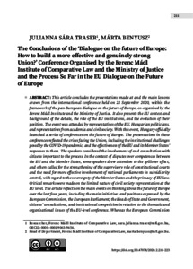 Traser, Julianna Sára and Benyusz, Márta (2020) The Conclusions of the ‘Dialogue on the future of Europe: How to build a more effective and genuinely strong Union?’ Conference Organised by the Ferenc Mádl Institute of Comparative Law and the Ministry of Justice. CENTRAL EUROPEAN JOURNAL OF COMPARATIVE LAW, 1 (2). pp. 211-223. ISSN 2732-0707