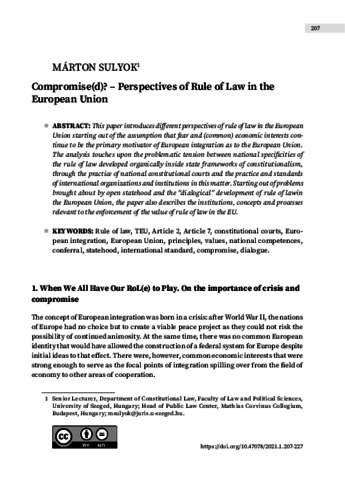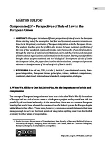 Sulyok, Márton (2021) Compromise(d)? – Perspectives of Rule of Law in the European Union. CENTRAL EUROPEAN JOURNAL OF COMPARATIVE LAW, 2 (1). pp. 207-227. ISSN 2732-0707