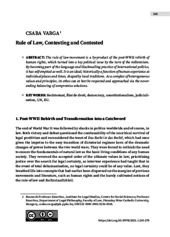 Varga, Csaba (2021) Rule of Law, Contesting and Contested. CENTRAL EUROPEAN JOURNAL OF COMPARATIVE LAW, 2 (1). pp. 245-278. ISSN 2732-0707