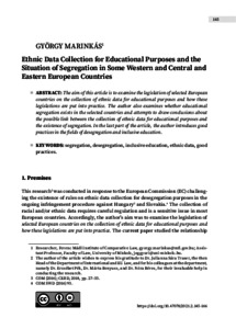 The aim of this article is to examine the legislation of selected European countries on the collection of ethnic data for educational purposes and how these legislations are put into practice. The author also examines whether educational segregation exists in the selected countries and attempts to draw conclusions about the possible link between the collection of ethnic data for educational purposes and the existence of segregation. In the last part of the article, the author introduces good practices in the fields of desegregation and inclusive education.