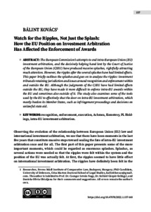 Kovács, Bálint (2022) Watch for the Ripples, Not Just the Splash: How the EU Position on Investment Arbitration Has Affected the Enforcement of Awards. CENTRAL EUROPEAN JOURNAL OF COMPARATIVE LAW, 3 (1). pp. 137-160. ISSN 2732-0707