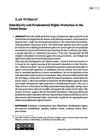 Wurman, Ilan (2022) Subsidiarity and Fundamental Rights Protection in the United States. CENTRAL EUROPEAN JOURNAL OF COMPARATIVE LAW, 3 (1). pp. 241-257. ISSN 2732-0707