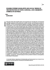 The paper deals with possible options and suggestions for changing the constitutional and legal regulations of the protection of state, national, and community symbols in Slovakia. In terms of constitutional regulation, the paper concludes that its change is not necessary—even in the context of the low overall rigidity of the Slovak constitution. In relation to the Act on State Symbols itself, only a change in the regulation of the use of the state emblem on the jerseys of the official national sports teams is proposed. Regarding the area of criminal law and administrative punishment, there is somewhat unclear distinction between the criminal offence of disorderly conduct and the infringement under Article 42(1)(a) of the Infringements Act. The distinction between misdemeanors and infringements is defined in the Criminal Code by means of substantive corrective. Thus, the relationship between the two offences in question is not dysfunctional and the ne bis in idem principle will not be infringed. However, the unclear relationship between the merits of the criminal offence and the infringement casts doubt on compliance with both the requirement of legal certainty and the requirements arising from the principle of nullum crimen sine lege certa. Despite the shortcomings of this approach, the only solution appears to be to leave the boundary between the respective criminal offence and infringement for the judiciary. The paper outlines how the courts approach the assessment of cases of defamation. However, the jurisprudence of Slovak courts in this matter is scarce and currently does not provide answers to all relevant questions. The decisions show the need for an individual and contextual assessment of the social danger of every case of defamation. The paper contains a proposal to create a new criminal offence—the defamation of a state symbol of the Slovak Republic. Criminal protection for foreign state symbols would continue to be provided in the context of the crime of disorderly conduct. This paper also provides proposals to change the regulation of the use of state symbols in public sports events. These amendments are intended to close the loopholes of the current regulation, which reduce its regulatory effectiveness. Furthermore, it is proposed to harmonize the rules governing the use of official stamps with state symbols—coat of arms—and with self-government symbols in relation to municipalities and self-governing regions.