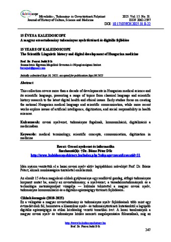 Forrai, Judit (2025) A magyar orvostudomány tudományos nyelvtörténeti és digitális fejlődése. KALEIDOSCOPE: MŰVELŐDÉS- TUDOMÁNY- ÉS ORVOSTÖRTÉNETI FOLYÓIRAT, 15 (31). pp. 247-254. ISSN 2062-2597