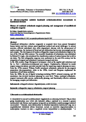 Lőrincz, Gergely (2025) Az állcsont-ortopédiai műtétek kombinált orthodontiai-sebészi tervezésének és kezelésének története. KALEIDOSCOPE: MŰVELŐDÉS- TUDOMÁNY- ÉS ORVOSTÖRTÉNETI FOLYÓIRAT, 15 (31). pp. 545-552. ISSN 2062-2597