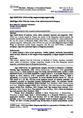 Rózsa, Mária (2025) Ágai Adolf (1836-1916) az éclap magyarországi megteremtője. KALEIDOSCOPE: MŰVELŐDÉS- TUDOMÁNY- ÉS ORVOSTÖRTÉNETI FOLYÓIRAT, 15 (31). pp. 600-603. ISSN 2062-2597