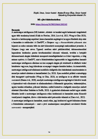 Hajdú, János and Bodor-Eranus, Eliza (2025) MI a jövő felsőoktatásában. In: Kortárs Kihívások a Köznevelésben és a Felsőoktatásban Nemzetközi Konferencia. Miskolci Egyetem, Miskolc-Egyetemváros, pp. 14-27.