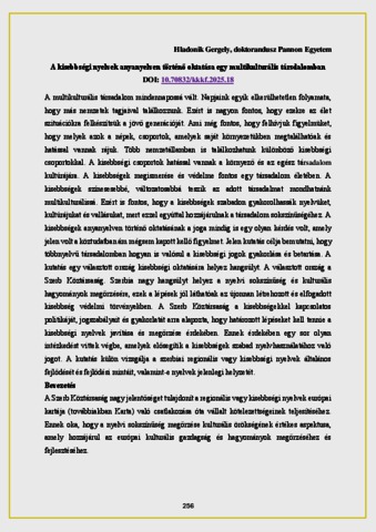 Hladonik, Gergely (2025) A kisebbségi nyelvek anyanyelven történő oktatása egy multikulturális társdalomban. In: Kortárs Kihívások a Köznevelésben és a Felsőoktatásban Nemzetközi Konferencia. Miskolci Egyetem, Miskolc-Egyetemváros, pp. 256-267.