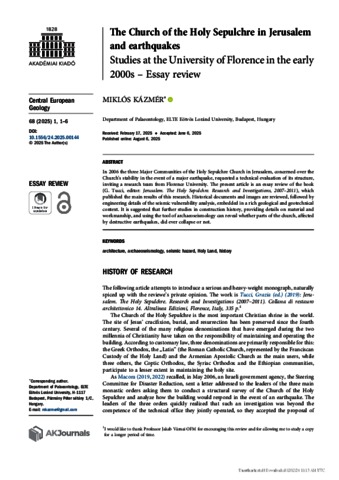 Kázmér, Miklós (2025) The Church of the Holy Sepulchre in Jerusalem and earthquakes: Studies at the University of Florence in the early 2000s : Essay review. CENTRAL EUROPEAN GEOLOGY, 68 (1). pp. 1-6. ISSN 1788-2281