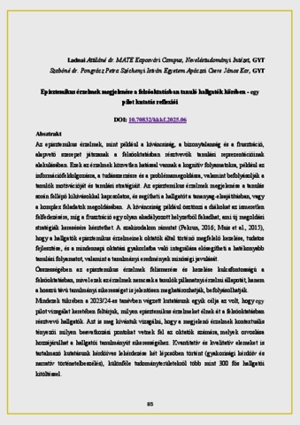 Ladnai Attiláné, Anita and Szabóné Pongrácz, Petra (2025) Episztemikus érzelmek megjelenése a felsőoktatásban tanuló hallgatók körében - egy pilot kutatás reflexiói. In: Kortárs Kihívások a Köznevelésben és a Felsőoktatásban Nemzetközi Konferencia. Miskolci Egyetem, Miskolc-Egyetemváros, pp. 85-97.