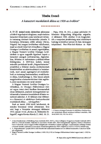 Török, Enikő Klára (2024) A kataszteri munkálatok állása az 1920-as években. CATASTRUM: ÉVNEGYEDES KATASZTERTÖRTÉNETI FOLYÓIRAT, 11 (2). pp. 47-57. ISSN 2064-5805