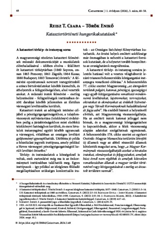 Reisz, T. Csaba and Török, Enikő Klára (2024) Katasztertörténeti hungarikakutatások. CATASTRUM: ÉVNEGYEDES KATASZTERTÖRTÉNETI FOLYÓIRAT, 11 (3). pp. 48-58. ISSN 2064-5805