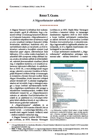 Reisz, T. Csaba (2024) A Négyzetkataszter adatbázis. CATASTRUM: ÉVNEGYEDES KATASZTERTÖRTÉNETI FOLYÓIRAT, 11 (3). pp. 59-64. ISSN 2064-5805