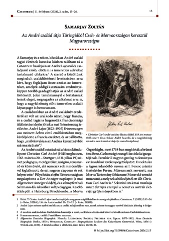 Samarjay, Zoltán (2024) Az André család útja Türingiából Cseh- és Morvaországon keresztül Magyarországra. CATASTRUM: ÉVNEGYEDES KATASZTERTÖRTÉNETI FOLYÓIRAT, 11 (2). pp. 15-26. ISSN 2064-5805