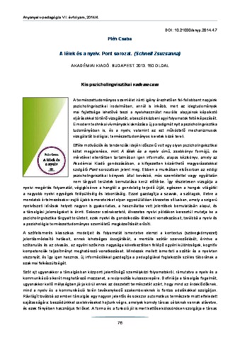Ismertetés: Pléh Csaba: A lélek és a nyelv. Pont sorozat. Akadémiai Kiadó. Budapest. 2013. 150 oldal.