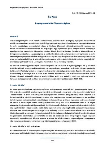 Éry, Anna (2014) Anyanyelvoktatás Olaszországban = First language teaching in Italy. ANYANYELV-PEDAGÓGIA, 7 (4). pp. 89-98. ISSN 2060-0623