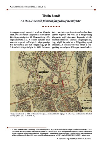 Török, Enikő Klára (2025) Az 1856. évi ötödik felmérési felügyelőség személyzete. CATASTRUM: ÉVNEGYEDES KATASZTERTÖRTÉNETI FOLYÓIRAT, 12 (1). pp. 3-14. ISSN 2064-5805