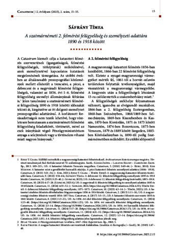 Sáfrány, Tímea (2025) A szatmárnémeti 2. felmérési felügyelőség és személyzeti adattára 1890 és 1918 között. CATASTRUM: ÉVNEGYEDES KATASZTERTÖRTÉNETI FOLYÓIRAT, 12 (2). pp. 15-35. ISSN 2064-5805