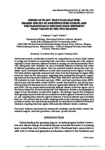 Sonkoly, Judit and Török, Péter (2025) Origin of Plant Trait Data Matters: Shared Species of Northwestern Europe and the Pannonian Ecoregion have Different Trait Values in the Two Regions. ACTA BOTANICA HUNGARICA, 67 (4). pp. 443-455. ISSN 0236-6495