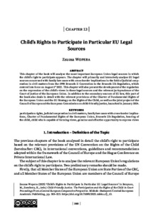 This chapter of the book will analyse the most important European Union legal sources in which the child’s right to participate appears. The chapter will primarily and intensively analyse EU legal sources concerned with family law cases with cross-border implications in the field of judicial cooperation in civil matters from the 1998 Brussels II Convention to the Brussels IIb Regulation, which entered into force on August 1st 2022. This chapter will also present the development of the regulation on the expression of the child’s views in these legal sources and the relevant jurisprudence of the Court of Justice of the European Union. In addition to the secondary sources of EU law, this part of the book also deals in detail with the relevant provisions of the Charter of Fundamental Rights of the European Union and the EU Strategy on the Rights of the Child, as well as the joint project of the Council of Europe and the European Commission on child-friendly justice, launched in January 2024.