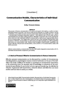 The purpose of human communication is to convey and acquire information, as well as to share individual emotions and needs. The success of this process depends on a number of factors. During socialization, every child encounters several communication styles and develops their own – typical – communication techniques along these patterns – with attention also to the by other persons expected behaviours and other influencing factors. Blockage in interaction also can be caused by the reason inherent in the individual’s ability to communicate, as well as by an inappropriately chosen form of communication. The chapter gives a brief overview of the individual characteristics (and disorders) of effective communication, as well as the personality typologies (e.g. DISC-model) that determines our communication style. Solutions that strengthen communication capabilities and support effective interpersonal communication, such as the 5C or 7C communication model, will also be presented.