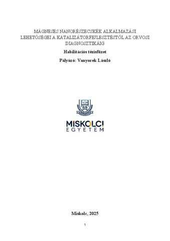 Vanyorek, László (2025) Mágneses nanorészecskék alkalmazási lehetőségei a katalizátorfejlesztéstől az orvosi diagnosztikáig. Other thesis, Miskolci Egyetem.