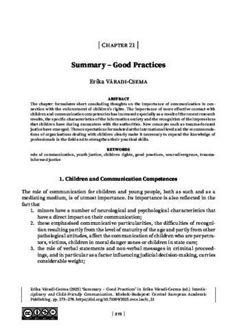 Váradi-Csema, Erika (2025) Summary – Good Practices. In: Interdisciplinary and Child-Friendly Communication. Human Rights – Children’s Rights . Central European Academic Publishing, Miskolc, pp. 273-278. ISBN 9786157027152