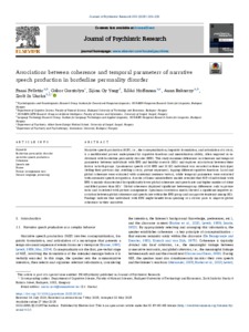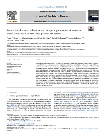 Felletár, Fanni and Gosztolya, Gábor and Yang, Zijian Győző and Hoffmann, Ildikó and Babarczy, Anna and Unoka, Zsolt (2025) Associations between coherence and temporal parameters of narrative speech production in borderline personality disorder. JOURNAL OF PSYCHIATRIC RESEARCH, 188. pp. 218-228. ISSN 0022-3956