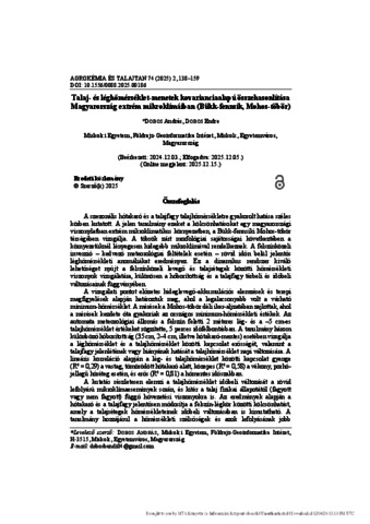 Dobos, András and Dobos, Endre (2025) Talaj- és léghőmérséklet-menetek kovarianciaalapú összehasonlítása Magyarország extrém mikroklímáiban (Bükk-fennsík, Mohos-töbör). AGROKÉMIA ÉS TALAJTAN, 74 (2). pp. 138-159. ISSN 0002-1873