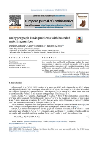 Gerbner, Dániel and Tompkins, Casey and Zhou, Junpeng (2025) On hypergraph Turán problems with bounded matching number. EUROPEAN JOURNAL OF COMBINATORICS, 127. No. 104155. ISSN 0195-6698