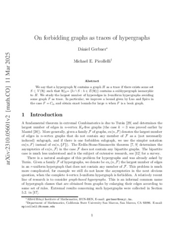 Gerbner, Dániel and Picollelli, Michael E. (2026) On forbidding graphs as traces of hypergraphs. DISCRETE MATHEMATICS, 349 (4). No. 114907. ISSN 0012-365X (In Press)