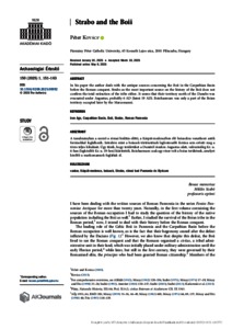 In his paper the author deals with the antique sources concerning the Boii in the Carpathian Basin before the Roman conquest. Strabo as the most important source on the history of the Boii does not confirm the total extinction of the tribe either. It seems that their territory north of the Danube was evacuated under Augustus, probably 6 AD (latest 19 AD). Boiohaemum was only a part of the Boian territory occupied later by the Marcomanni.