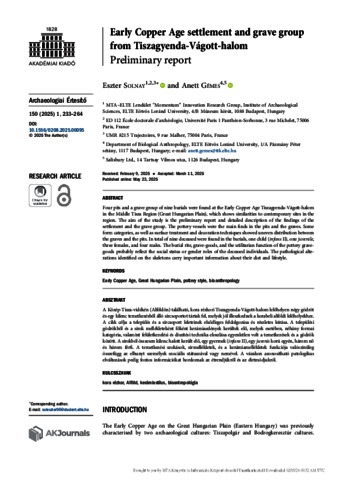 Solnay, Eszter and Gémes, Anett (2025) Early Copper Age settlement and grave group from Tiszagyenda-Vágott-halom : Preliminary report. ARCHAEOLOGIAI ÉRTESÍTŐ (BUDAPEST), 150 (1). pp. 233-264. ISSN 0003-8032