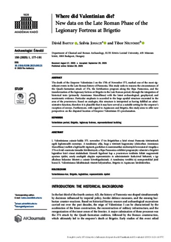 Bartus, Dávid and Joháczi, Szilvia and Négyökrű, Tibor (2025) Where did Valentinian die? : New data on the Late Roman Phase of the Legionary Fortress at Brigetio. ARCHAEOLOGIAI ÉRTESÍTŐ (BUDAPEST), 150 (1). pp. 177-191. ISSN 0003-8032