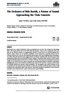 Vászka, Anikó and Pintér, Csilla Mária (2025) The Orchestra of Béla Bartók, a Painter of Sound: Approaching the Viola Concerto. STUDIA MUSICOLOGICA: AN INTERNATIONAL JOURNAL OF MUSICOLOGY OF THE HUNGARIAN ACADEMY OF SCIENCES, 65 (3-4). pp. 315-325. ISSN 1788-6244
