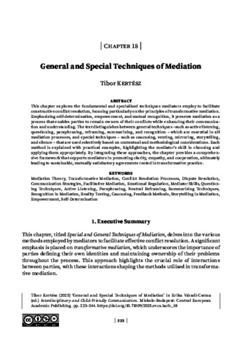 Kertész, Tibor (2025) General and Special Techniques of Mediation. In: Interdisciplinary and Child-Friendly Communication. Human Rights – Children’s Rights . Central European Academic Publishing, Miskolc, pp. 223-244. ISBN 9786157027152