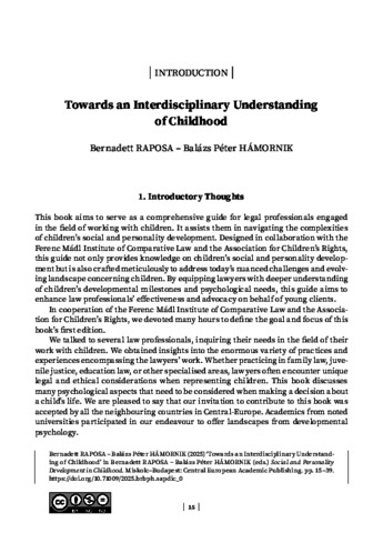 Raposa, Bernadett and Hámornik, Balázs Péter (2025) Introduction – Towards an Interdisciplinary Understanding of Childhood. In: Social and Personality Development in Childhood. Human Rights – Children’s Rights . Central European Academic Publishing, Budapest, Hungary, pp. 15-39. ISBN 9786157027008