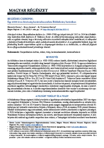 Hegedűs, Zsuzsa and Kalli, András and K. Tutkovics, Eszter (2023) Beszédes cserepek: Egy 6000 éves közösség kerámiahasználata Bükkábrány határában. MAGYAR RÉGÉSZET, 12 (4). pp. 1-9. ISSN 2416-0288