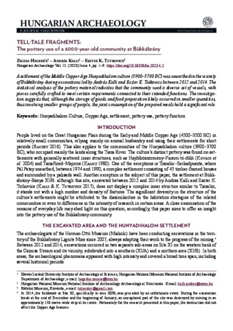 Hegedűs, Zsuzsa and Kalli, András and K. Tutkovics, Eszter (2023) Tell-tale fragments: The pottery use of a 6000-year-old community at Bükkábrány. HUNGARIAN ARCHAEOLOGY, 12 (4). pp. 1-9. ISSN 2416-0296