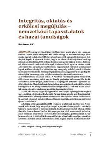 Biró, Ferenc Pál (2025) Integritás, oktatás és erkölcsi megújulás – nemzetközi tapasztalatok és hazai tanulságok = Integrity, Education, and Moral Renewal – International Insights and Lessons for Hungary. PÉNZÜGYI SZEMLE/PUBLIC FINANCE QUARTERLY (1963-), 71 (4). pp. 9-37. ISSN 0031-496X