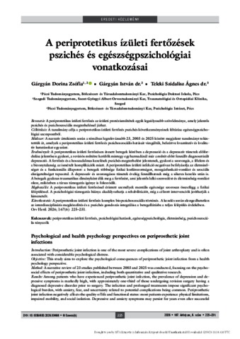 Gárgyán, Dorina Zsófia and Gárgyán, István and Teleki, Szidalisz Ágnes (2026) A periprotetikus ízületi fertőzések pszichés és egészségpszichológiai vonatkozásai = Psychological and health psychology perspectives on periprosthetic joint infections. ORVOSI HETILAP, 167 (6). pp. 225-231. ISSN 0030-6002