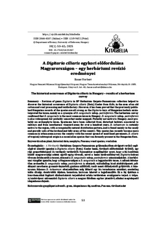 Bauer, Norbert (2025) A Digitaria ciliaris egykori előfordulása Magyarországon – egy herbáriumi revízió eredményei. KITAIBELIA, 30 (1). pp. 53-62. ISSN 1219-9672
