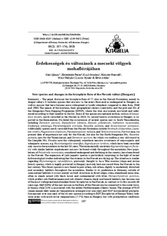 Csiky, János and Erzberger, Peter and Kaló, Orsolya and Nádasdi, Marcell and Wolf, Mátyás and Zakály, Gyula and Sipos, Attila (2025) Érdekességek és változások a mecseki völgyek mohaflórájában. KITAIBELIA, 30 (2). pp. 157-176. ISSN 1219-9672