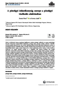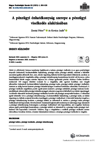 Zentai, Péter and Kovács, Judit (2025) A pénzügyi énhatékonyság szerepe a pénzügyi viselkedés alakításában = The role of financial self-efficacy in shaping financial behavior in Hungary. MAGYAR PSZICHOLÓGIAI SZEMLE, 80 (4). pp. 606-626. ISSN 0025-0279