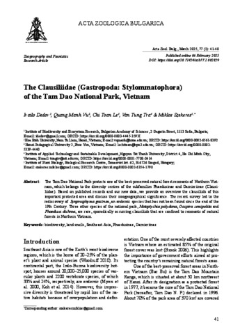 Dedov, Ivailo and Vu, Quang Manh and Le, Chi Toan and Tra, Van Tung and Szekeres, Miklós (2025) The Clausiliidae (Gastropoda: Stylommatophora) of the Tam Dao National Park, Vietnam. ACTA ZOOLOGICA BULGARICA, 77 (1). pp. 41-48. ISSN 0324-0770