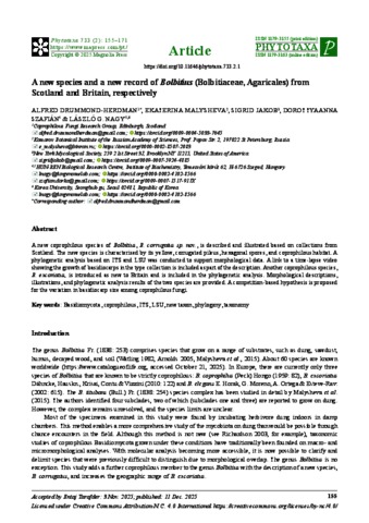Drummond-Herdman, Alfred and Malysheva, Ekaterina and Jakob, Sigrid and Szafian, Dorottya Anna and Nagy, László (2025) A new species and a new record of Bolbitius (Bolbitiaceae, Agaricales) from Scotland and Britain, respectively. PHYTOTAXA, 733 (2). pp. 155-171. ISSN 1179-3155