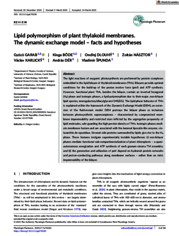 Garab, Győző and Böde, Kinga and Dlouhy, Ondrej and Násztor, Zoltán and Karlicky, Vaclav and Dér, András and Spunda, Vladimir (2025) Lipid polymorphism of plant thylakoid membranes. The dynamic exchange model - facts and hypotheses. PHYSIOLOGIA PLANTARUM, 177 (2). No. -e70230. ISSN 0031-9317