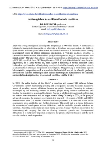 Belyó, Pál (2025) Adósságteher és csökkentésének realitása. ACTA PERIODICA (EDUTUS), 36. pp. 39-54. ISSN 2063-501X