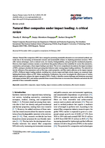 Mulenga, Timothy K. and Mavinkere Rangappa, Sanjay and Siengchin, Suchart (2025) Natural fiber composites under impact loading: A critical review. EXPRESS POLYMER LETTERS, 19 (5). pp. 470-493. ISSN 1788-618X