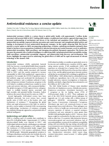 Ho, Charlotte S and Wong, Carlos T H and Aung, Thet Tun and Lakshminarayanan, Rajamani and Mehta, Jodhbir S and Rauz, Saaeha and McNally, Alan and Kintses, Bálint and Peacock, Sharon J and de la Fuente-Nunez, Cesar and Hancock, Robert E W and Ting, Darren S J (2025) Antimicrobial resistance: a concise update. LANCET MICROBE, 6 (1). No. 100947. ISSN 2666-5247
